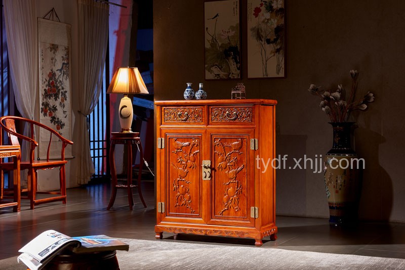 榆木(mù)中式雙開(kāi)門(mén)鞋櫃雕花(huā)儲物(wù)收納櫃13_詳細介紹