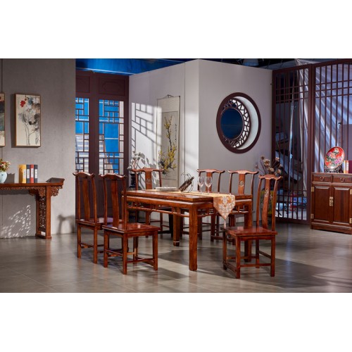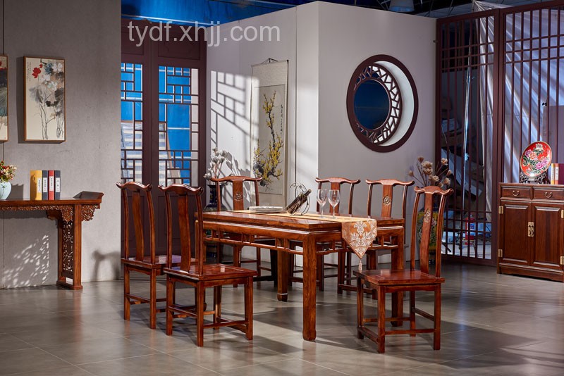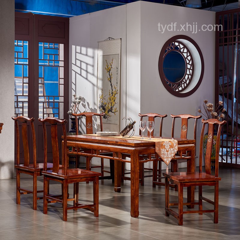 下(xià)一(yī)産品:仿古新中式榆木(mù)長(cháng)方形餐桌椅組合04
