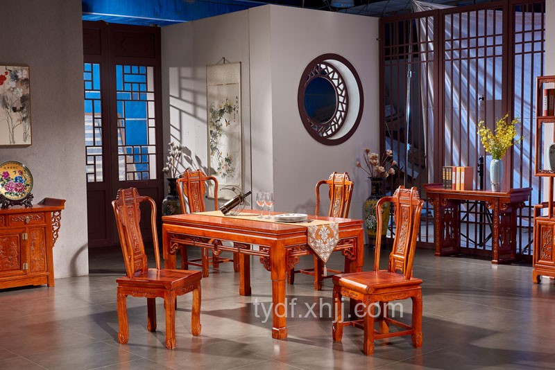 仿古新中式榆木(mù)長(cháng)方形餐桌椅組合04_詳細介紹