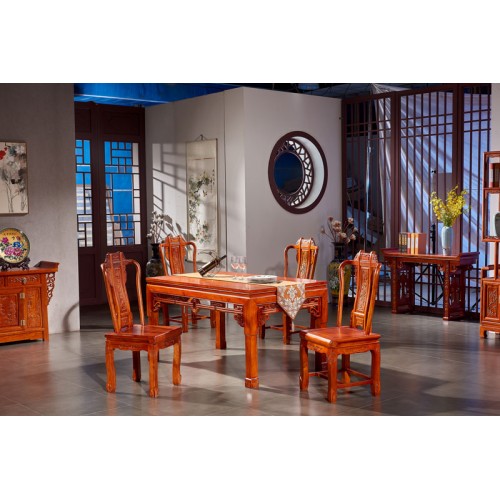 | 商品: | 仿古新中式榆木(mù)長(cháng)方形餐桌椅組合04 |