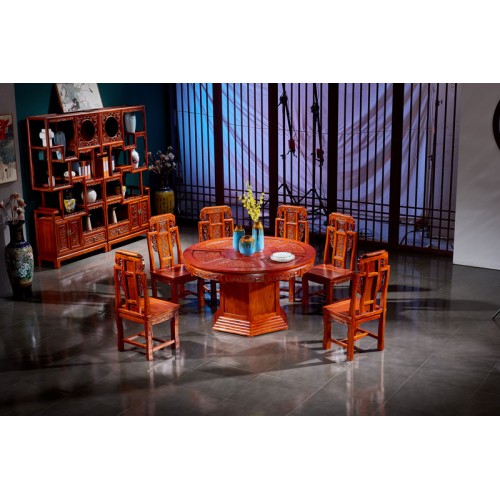 | 商品: | 新中式雕花(huā)榆木(mù)圓形餐桌高(gāo)背餐椅組合06 |