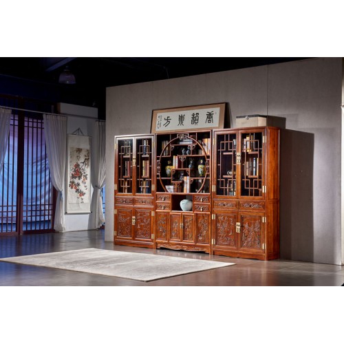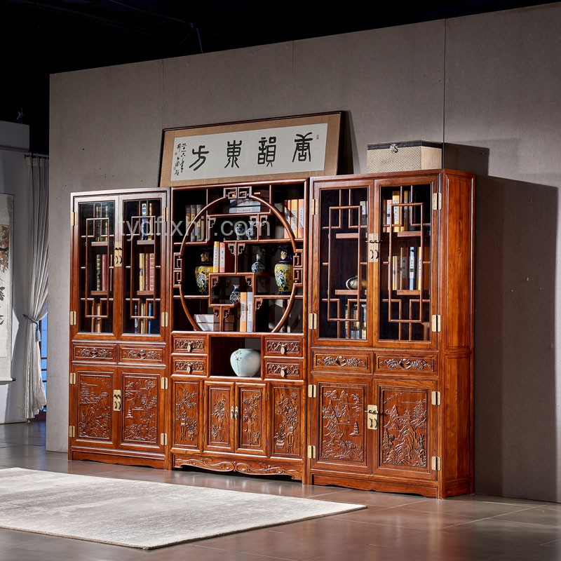 下(xià)一(yī)産品:榆木(mù)中式書(shū)櫃組合雕花(huā)書(shū)架頂箱書(shū)櫃帶玻璃門(mén)書(shū)架書(shū)櫥07