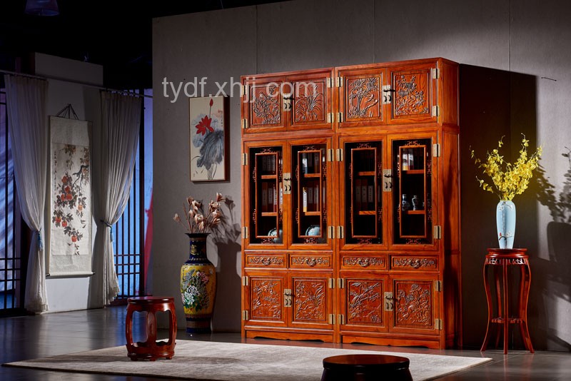 榆木(mù)中式書(shū)櫃組合雕花(huā)書(shū)架頂箱書(shū)櫃帶玻璃門(mén)書(shū)架書(shū)櫥07_詳細介紹