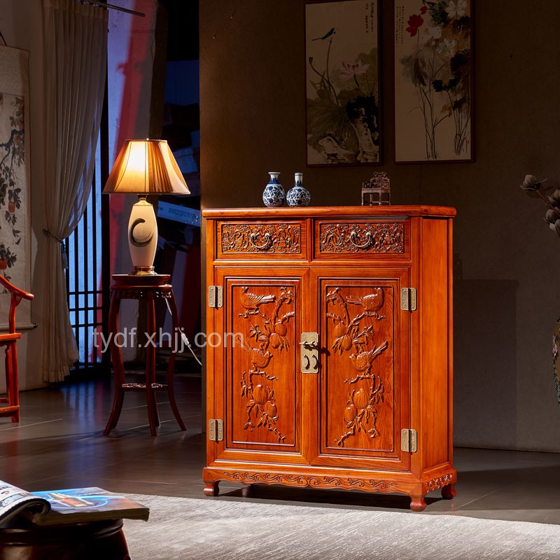 榆木(mù)中式雙開(kāi)門(mén)鞋櫃雕花(huā)儲物(wù)收納櫃13_詳細介紹