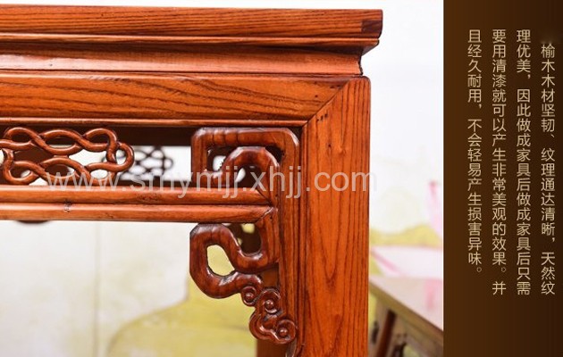 榆木(mù)材質相(xiàng)比于其他(tā)木(mù)材含糖量高(gāo),所以在平時(shí)使用(yòng)中更易被蟲蛀。在使用(yòng)時(shí)要(yào)勤于打¶理(lǐ),擦拭時(shí)盡量使用(yòng)幹淨柔軟的(de)抹布,順著(zhe)木(mù)材的(de)紋理(lǐ)輕輕擦拭即可(kě)。老(lǎo)榆木(mù)的(↓de)吸濕性較強,所以在家(jiā)具表面不(bù)要(yào)放(fàng)置具有(yǒu)腐蝕性的(de)物(wù)品,如(rú)熱(rè)水(shuǐ)杯、墨水(shuǐ)∞等。如(rú)果使用(yòng)榆木(mù)材質的(de)茶幾,在放(fàng)置茶水(shuǐ)杯時(shí)應放(fàng)置杯墊,保護家(jiā)具表層。為(↓wèi)了(le)避免家(jiā)具變形,不(bù)應在榆木(mù)家(jiā)具上(shàng)長(cháng)時(shí)間(jiān)放(fàng)§置過重的(de)物(wù)品,例如(rú)電(diàn)視(shì)機(jī)、魚缸等。如(rú)需擺放(fàng)這(zhè)些(xiē)物(wù)品,好(hǎo)在家(jiσā)具表層鋪一(yī)層軟墊。