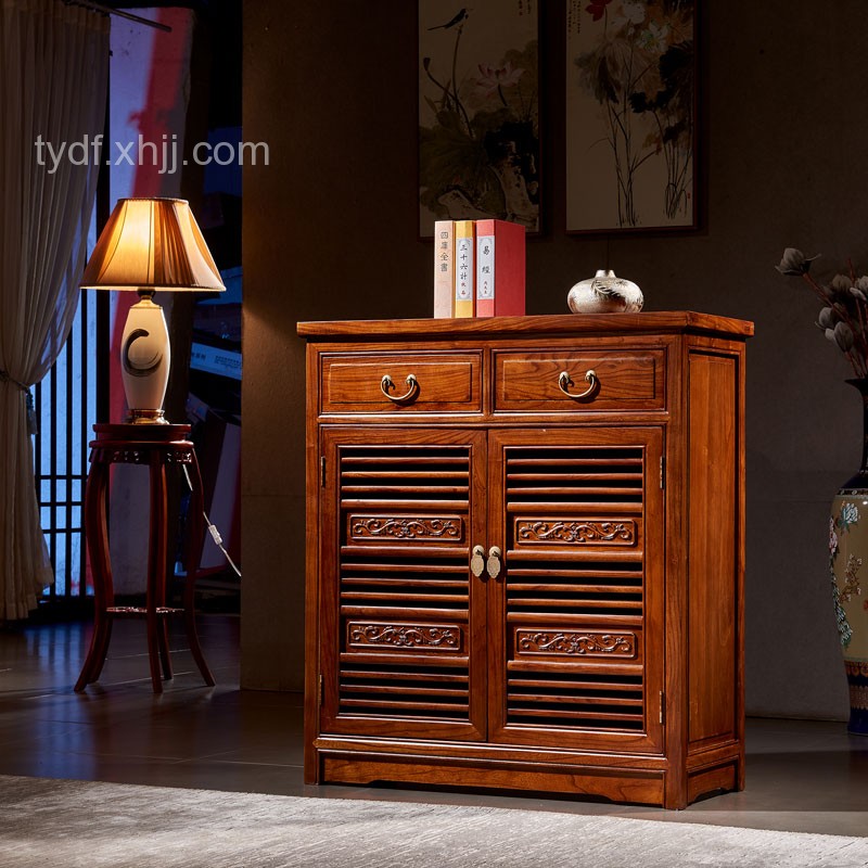 名稱:榆木(mù)中式雙開(kāi)門(mén)鞋櫃雕花(huā)儲物(wù)收.