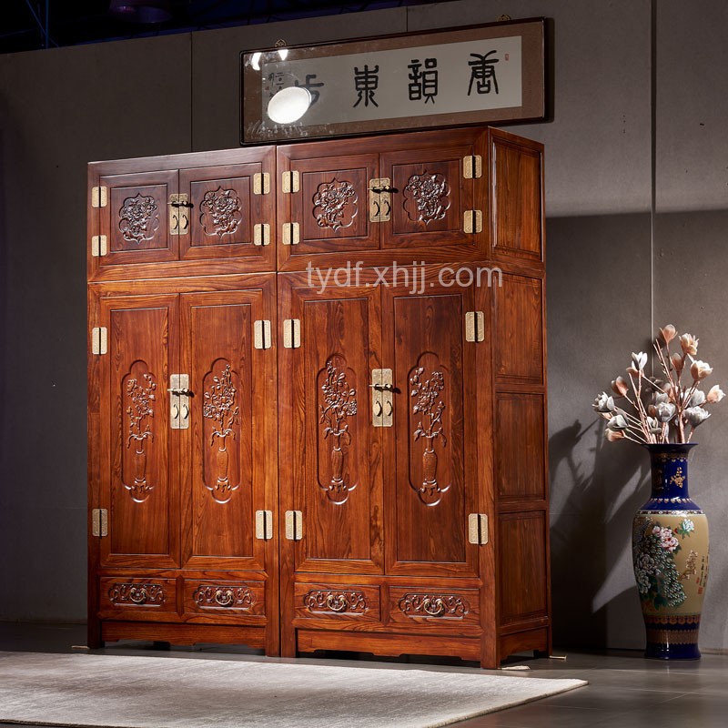 名稱:榆木(mù)雕花(huā)大(dà)衣櫃新中式實木(mù)卧室.