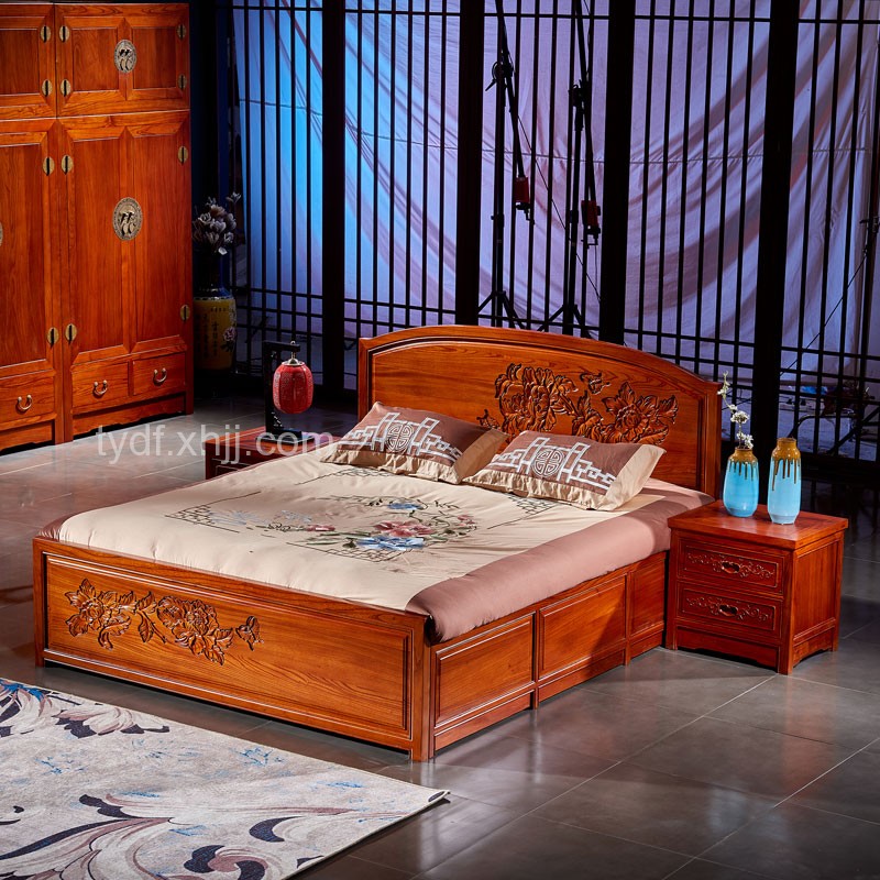 名稱:簡約中式榆木(mù)雙人(rén)床卧室家(jiā)具高(gāo).
